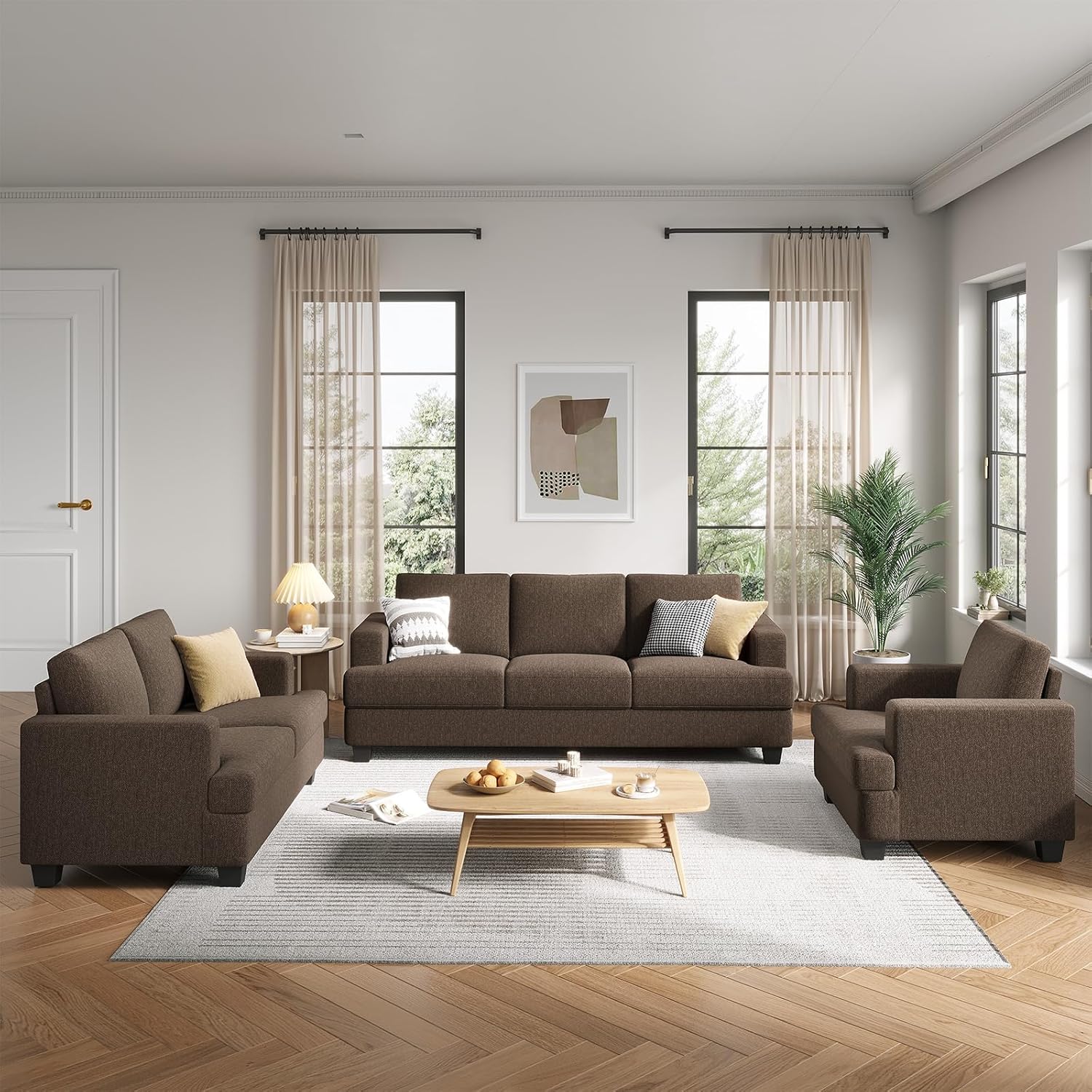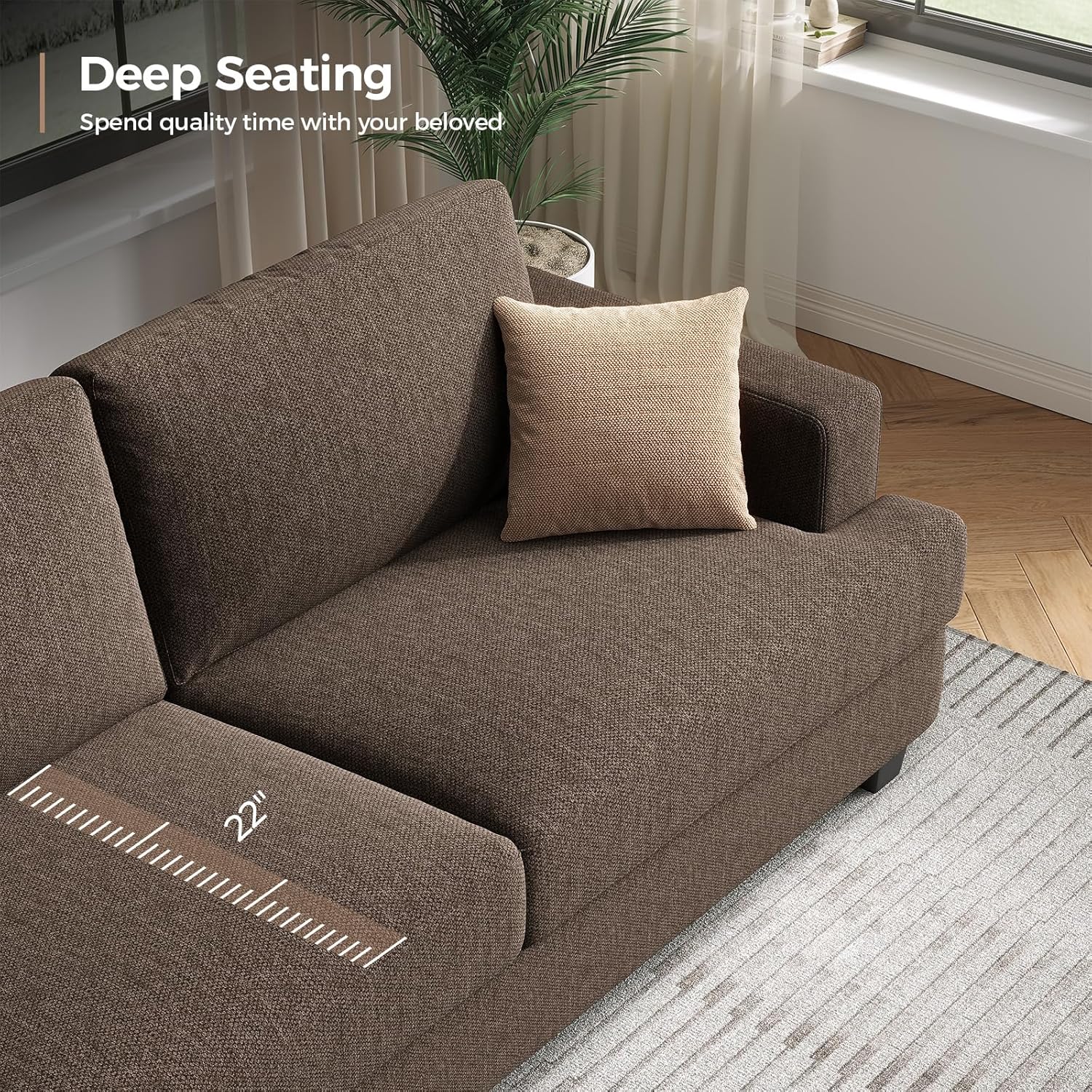 84 Inch Sofa with Extra Deep Seats Oversize, Linen Fabric 2 Seater Sofa for Living Room,Modern Couch and Loveseat, Comfy Armrests and Seats and Backrests, Easy Installation, Brown