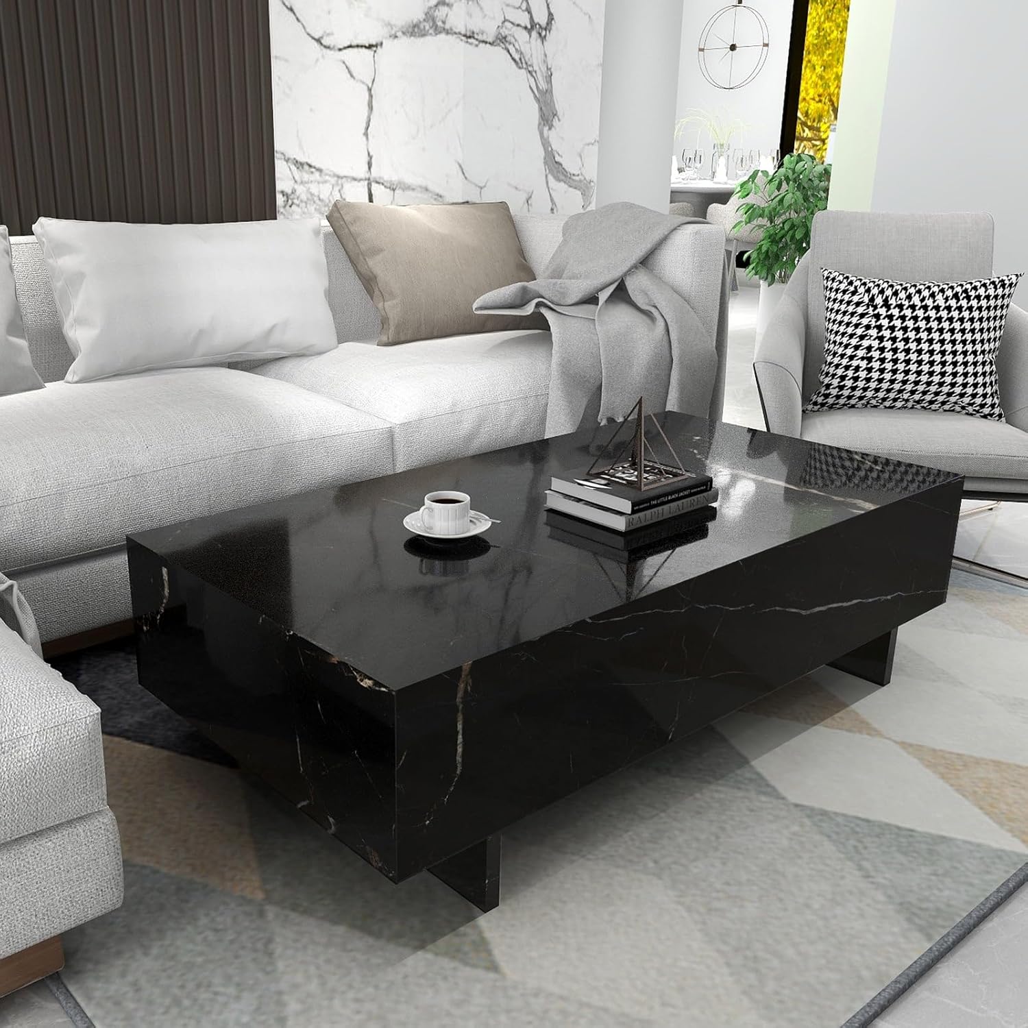 COSVALVE Marble Rectangle Coffee Tables for Living Room,Black Modern Side Table,Contemporary High Gloss Elegant Center Table for Waiting Area,41.3" Lx19.7 Wx13.8 H,Black