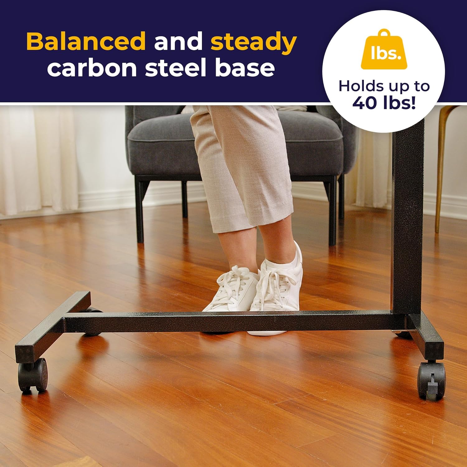 The Non-Tilt Overbed Table from Drive Medical represents everything you want in a traditional and sturdy mobile bed table. The height-adjustable table rises and lowers easily, requiring the slightest of upward pressure, making it user-friendly for all ages and needs. The swivel casters make this rolling table extremely lightweight and comfortable to move from one position or room to the next. The laminated surface is textured, making it difficult for items to slide off your table, and once your desired height is reached, the tabletop locks firmly and safely into place. Backed by a limited lifetime warranty from Drive Medical, a leading brand of bath safety products, mobility aids, and other medical goods for more than 20 years, you can purchase with confidence.