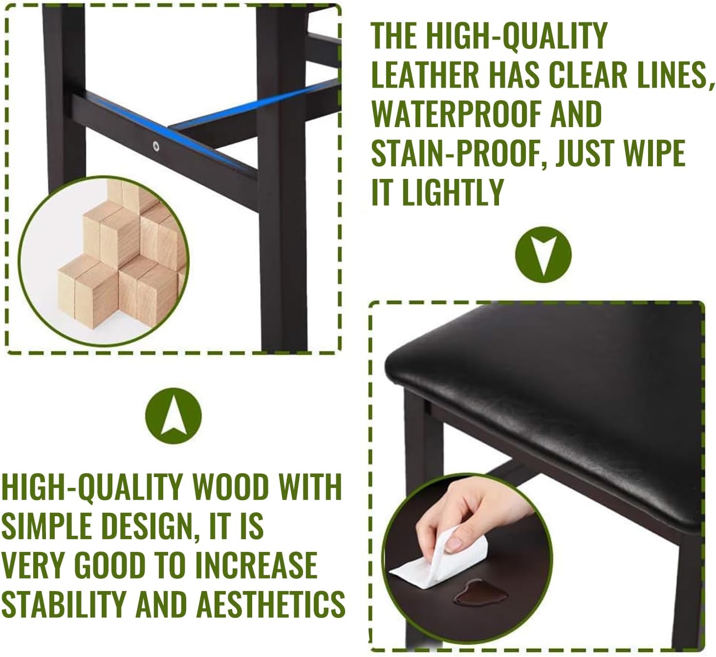 Enhance your dining space with this 5-piece solid wood dining table set—designed for both function and style in compact settings. Crafted from durable solid wood, this set offers a sturdy structure and a smooth surface that’s built to withstand everyday use while maintaining an elegant appearance. Perfectly suited for kitchens, apartments, dining nooks, or commercial spaces like cafés and bistros, the set includes a table and two upholstered chairs. The padded seats and supportive high backs provide ergonomic comfort, making every meal more enjoyable whether you’re dining solo or hosting a guest. The space-saving design allows the chairs to slide neatly under the table when not in use, keeping your space organized and tidy. Easy-to-follow instructions and included hardware make assembly simple, while the smooth tabletop surface ensures easy cleaning and low-maintenance upkeep. Combining practicality, comfort, and timeless charm, this dining table set is a versatile addition to any small living or dining area.