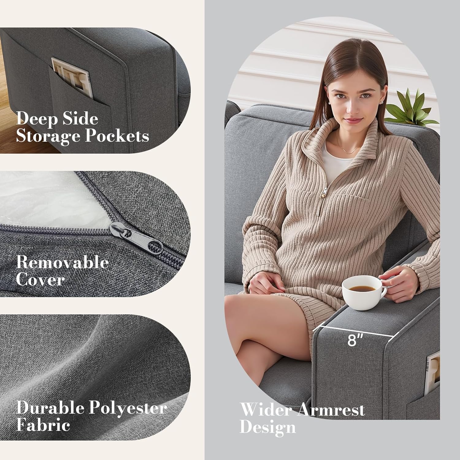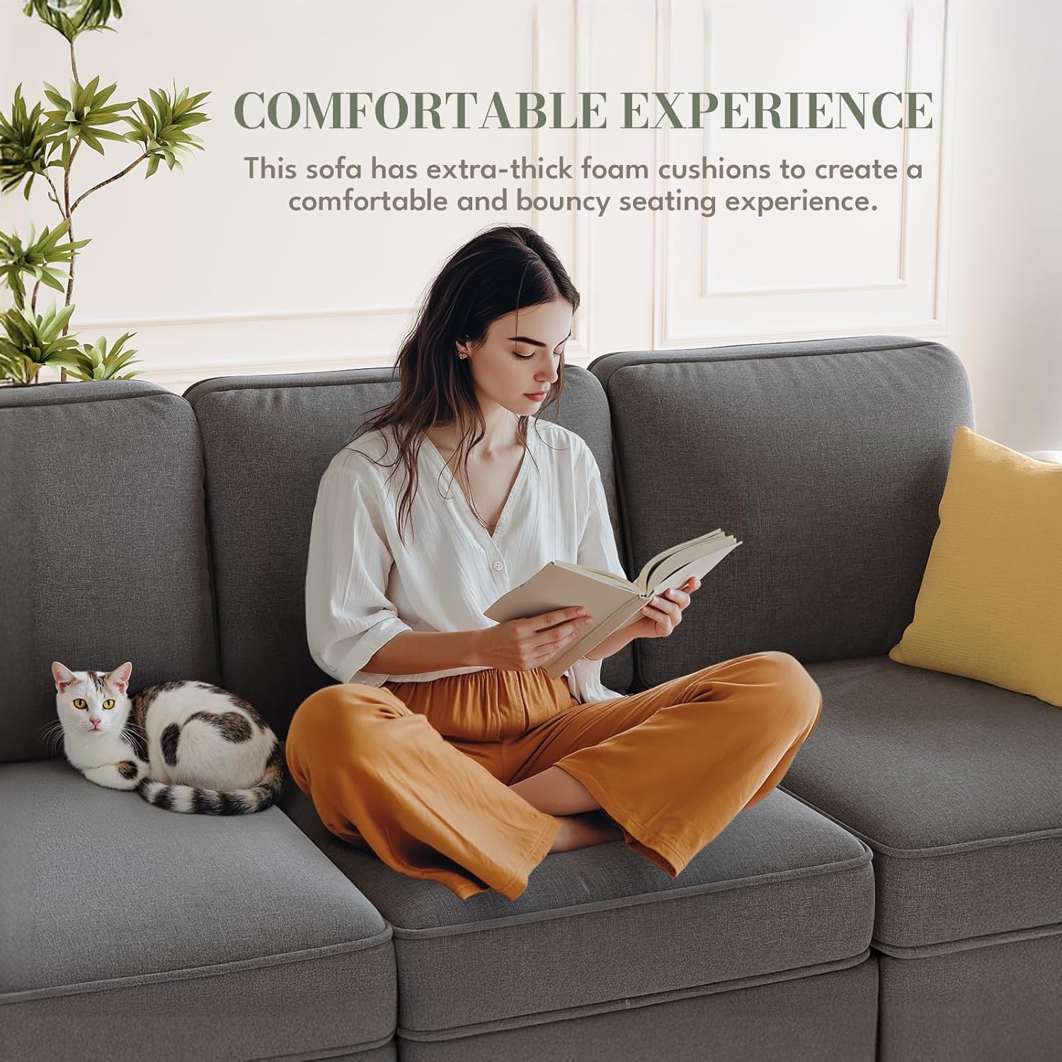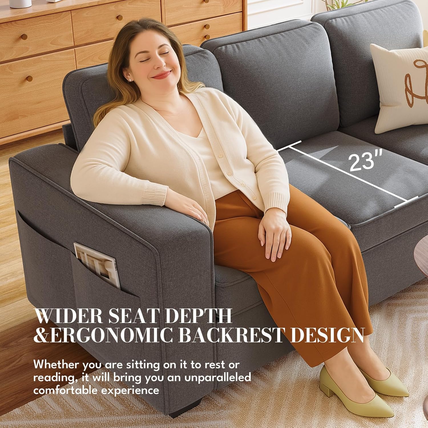 IULULU 82 Inch Sofa, Modern 3 Seater Couch for Living Room, Comfy Couches with Deep Seat, Side Pockets for Apartment, Office, Studio, Gray